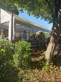 Am 16. August konnte nach wetterbedingter Terminverschiebung endlich unser Sommerfest mit offener Künstlerbühne stattfinden. Der Wettergott zeigte sich erfreulicherweise gnädig - trotz schlechter Prognosen blieb es trocken und angenehm. Fantastische Künstler traten auf und begeisterten das Publikum mit ihrem Können. Thomas Mack auf der Gitarre, das Künstlerduo MehrSaiter und das ukrainische Künstlerquartett Ukrband (Yulia Polischuk (Geige), Evgen Gavrilyuk (Akkordeon), Vladimir Trykolenko (Kontrabass, Balalaika), Michael Leontchik (Cimbalom).