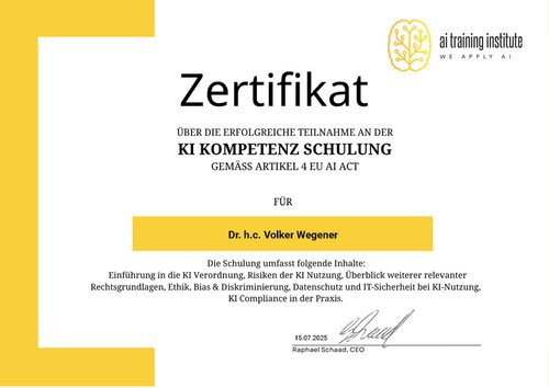 Ab Februar 2025 verlangt der EU AI Act (Art. 4) von jedem AI Nutzer einen Nachweis „ausreichender KI-Kompetenz“: