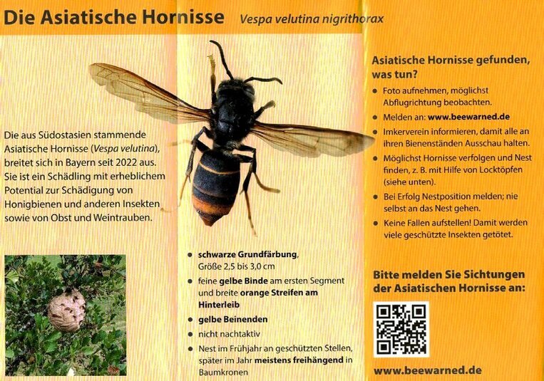 "Ich habe von befreundeten Imkern Infomaterial zur Europäischen und zum Vergleich zur Asiatischen Hornisse erhalten"